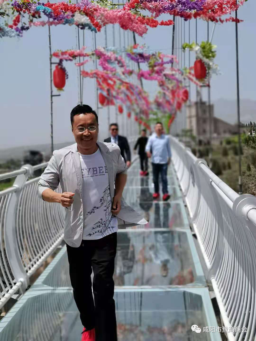 劉文捷會長在百米高的玻璃天橋上健步如飛