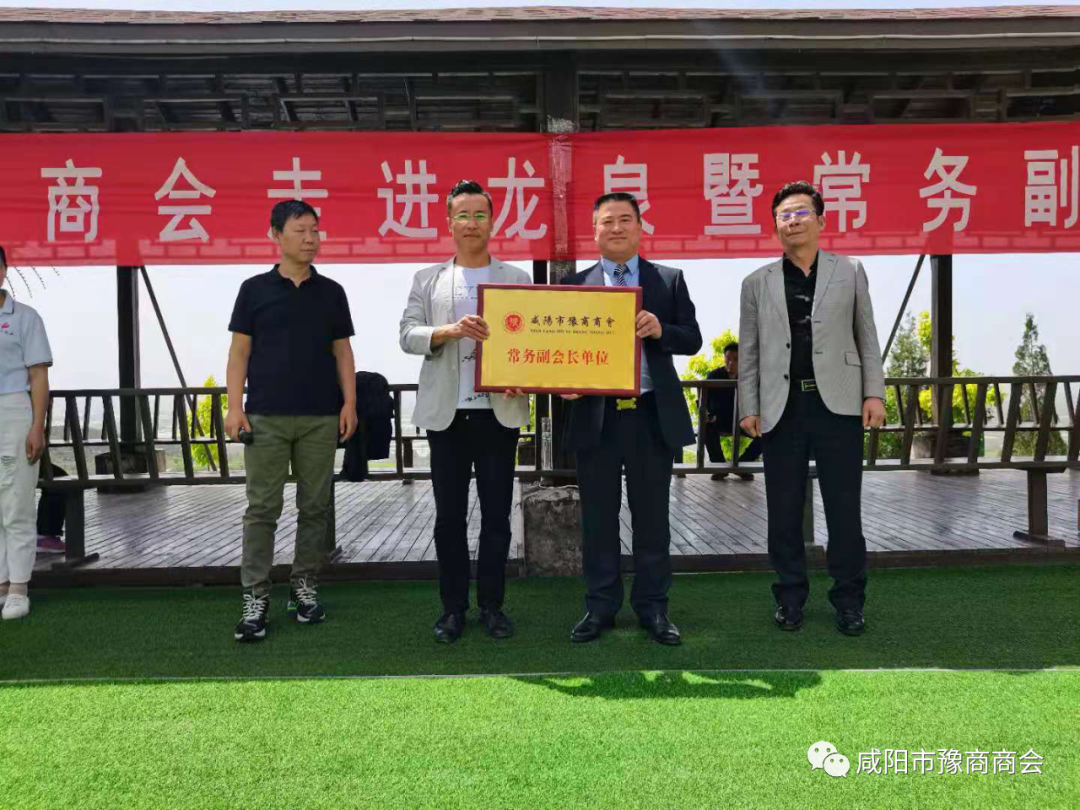 4月30日上午,天氣晴朗,春風和煦,涇陽縣龍泉山莊里彩旗飄揚,鑼鼓喧天。在一派喜慶、熱鬧的歡樂氣氛中,咸陽豫商商會2021年第三次理事擴大會議暨走進龍泉常務副會長單位掛牌儀式,在這里隆重舉行。